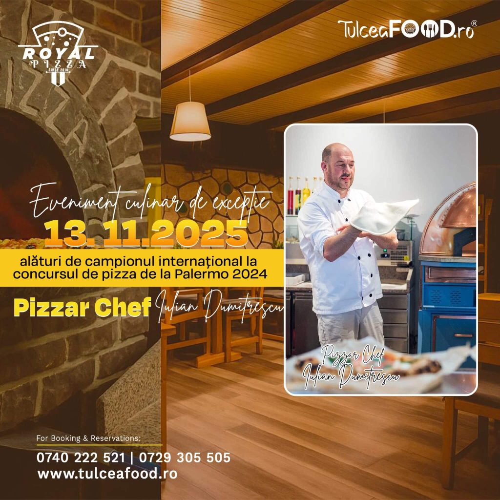 Pe 13 noiembrie 2025, Pizzeria Royal (Str. Plevnei nr. 32, Tulcea) te invita la o seara speciala dedicata pasionatilor de pizza!